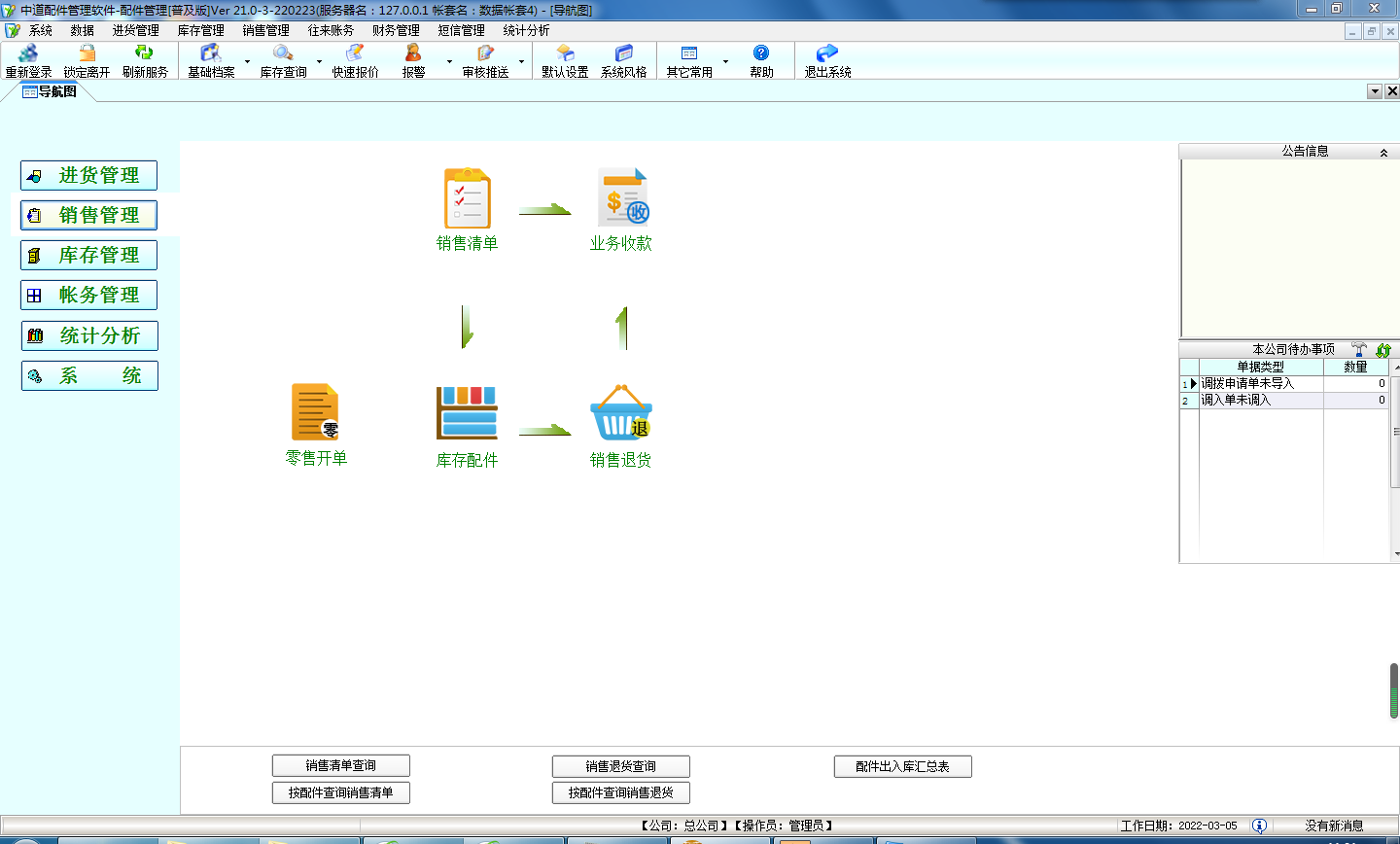 ●功能介绍:此版本为汽配五金等专业进销存版本,进销存首推版本,该版本可适用汽配单店连锁店,五金单店连锁店,专业性非常强,速度非常快,软件更新即时,配件,五金,进销存行业,连锁店行业主推版本,此版本可局域网使用,远程使用,本地服务器,远程托管服务,对接手机APP均可。